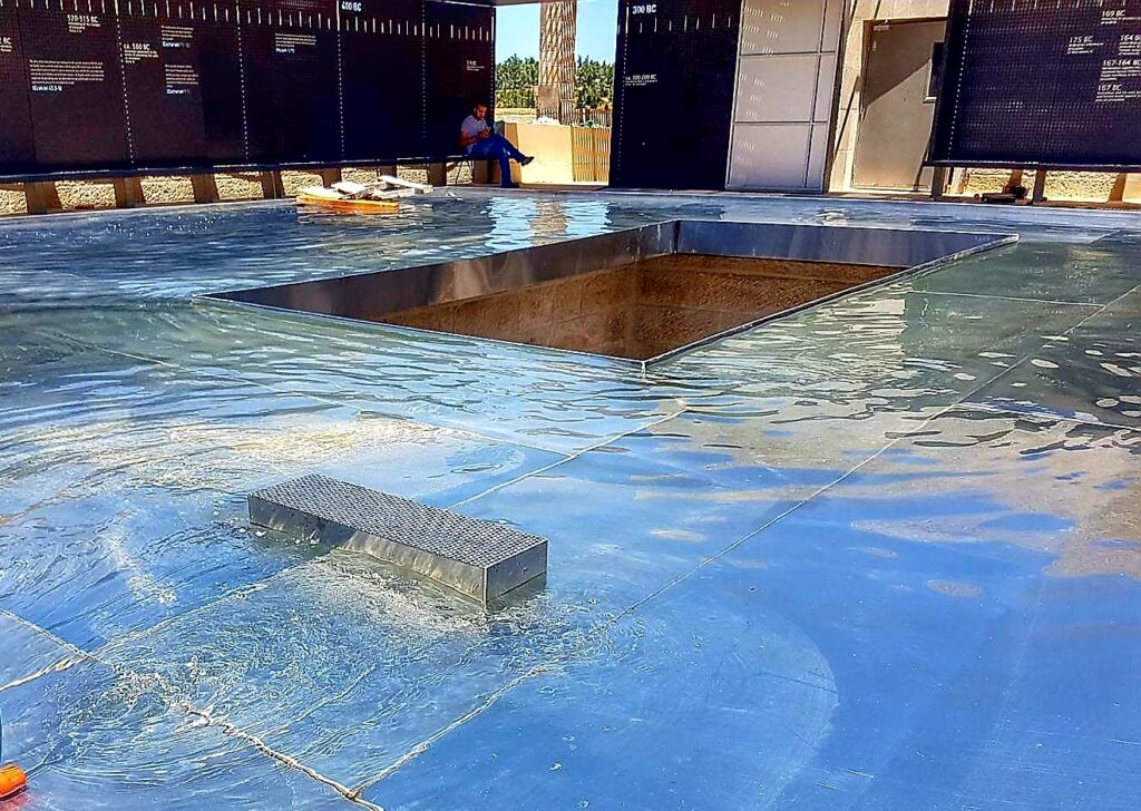 בריכת נוי “מרחפת” מנירוסטה בפרויקט ציבורי באבו גוש.