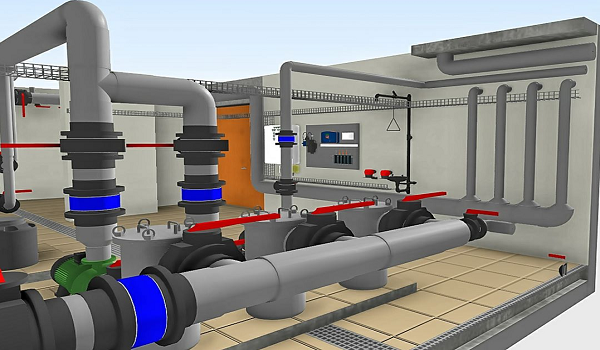 חדר מכונות של בריכות שחייה טיפולית – מידול בתלת מימד