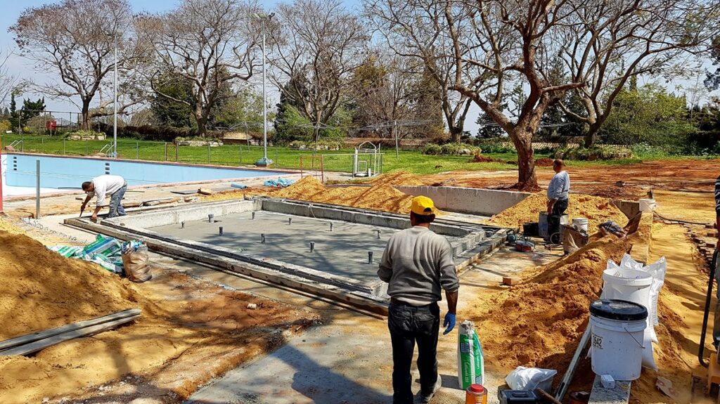 לקראת סיום בניית בריכת פעוטות במשמר השרון