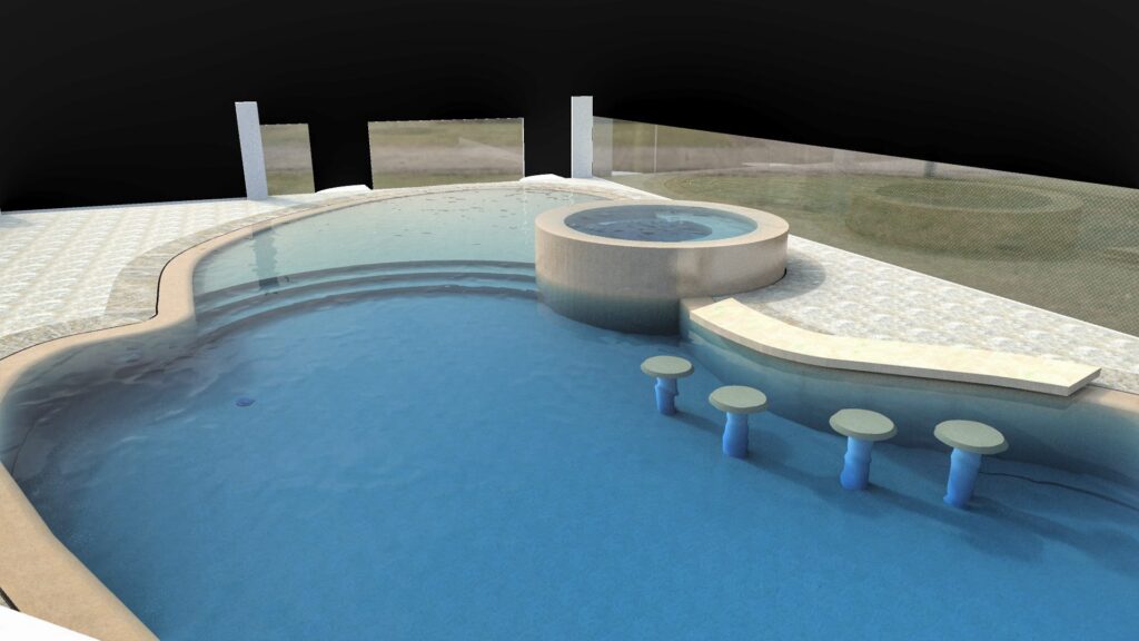 כמו כל תהליך תכנון, גם תכנון בריכת שחייה מתחיל מסקיצה ראשונית המוצגת ללקוח לצורך קבלת הערות וכיוונים סופיים. במקרה הזה הלקוח ביקש בריכת שחייה עם חוף ים המשולבת בג'קוזי בנוי ואזור שכשוך – מים עמוקים. לאחר הצגת הסקיצה הראשונית אנו נכנסים לליטושים של הקונספט עד לקבלת התכנון הסופי. הדמייה תלת מימדית של בריכת השחייה מאפשרת תיאום ציפיות מלא עם הלקוח.