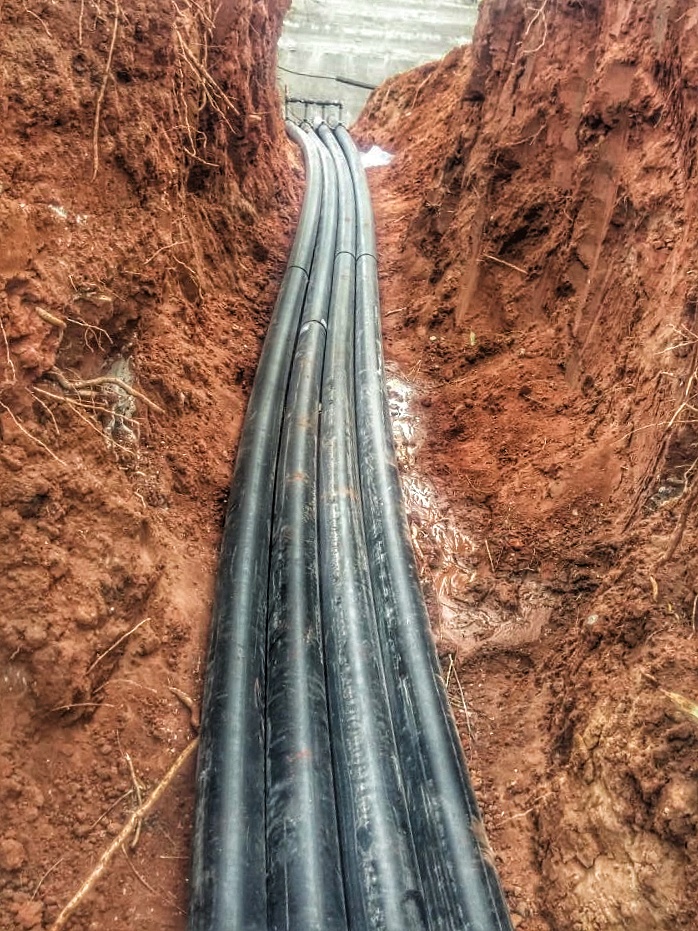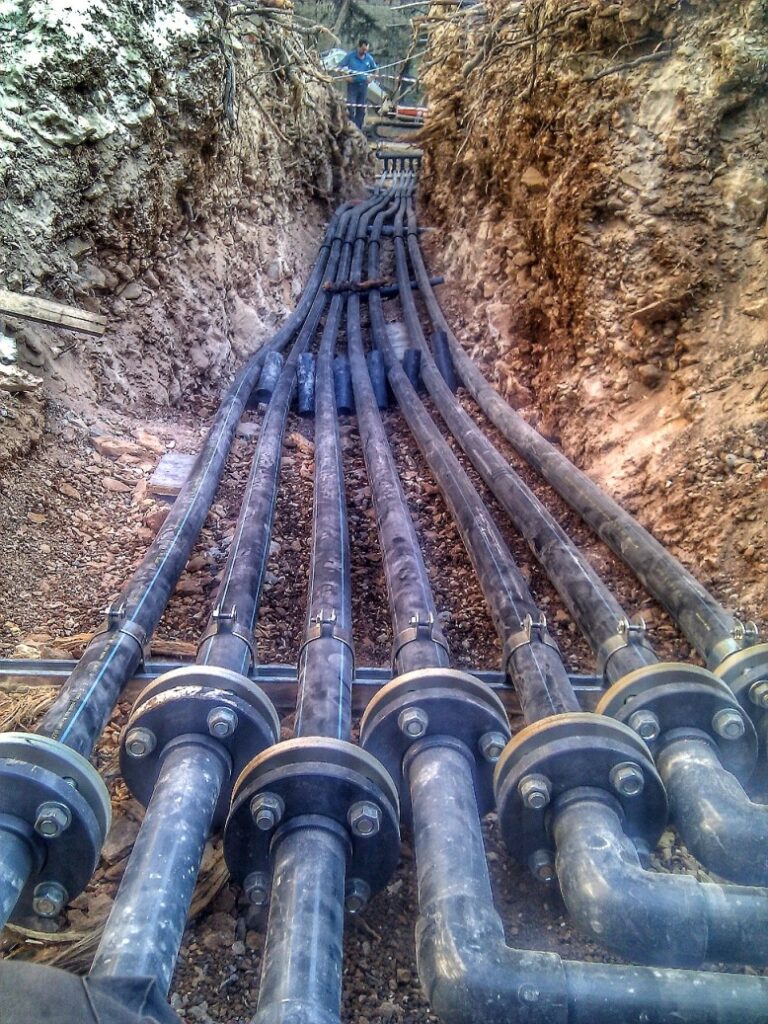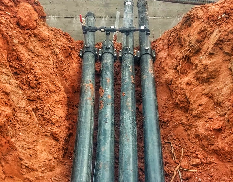 צנרת פוליאתילן באדמה לבריכות שחייה.