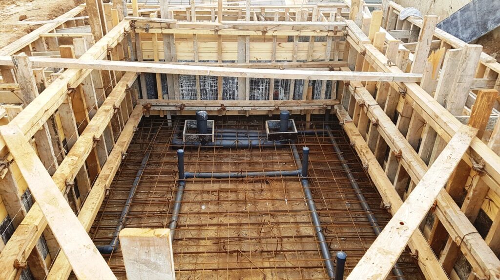 רגע לפני חג הפסח – הכל מוכן לקראת יציקת בריכת השחייה, צנרת מותקנת בין רשתות הזיון, תבניות לבורות הניקוז במקומם, תשתית לגופי התאורה הותקנה, בדיקת הלחץ הושלמה ונבדקה, טפסנות הקירות הודקה למקומה בפעם האחרונה, הארקת יסוד בוצעה – נותר רק לחכות לבטון שיגיע ועוד שלב בבניית בריכת שחייה זו יושלם.