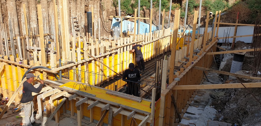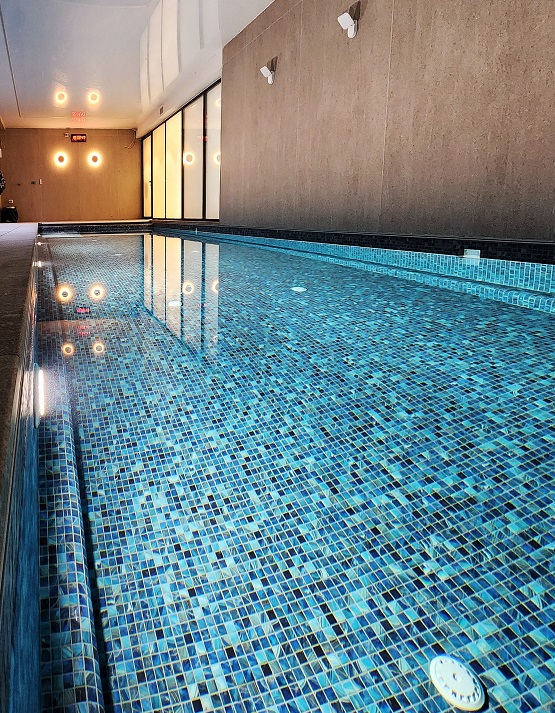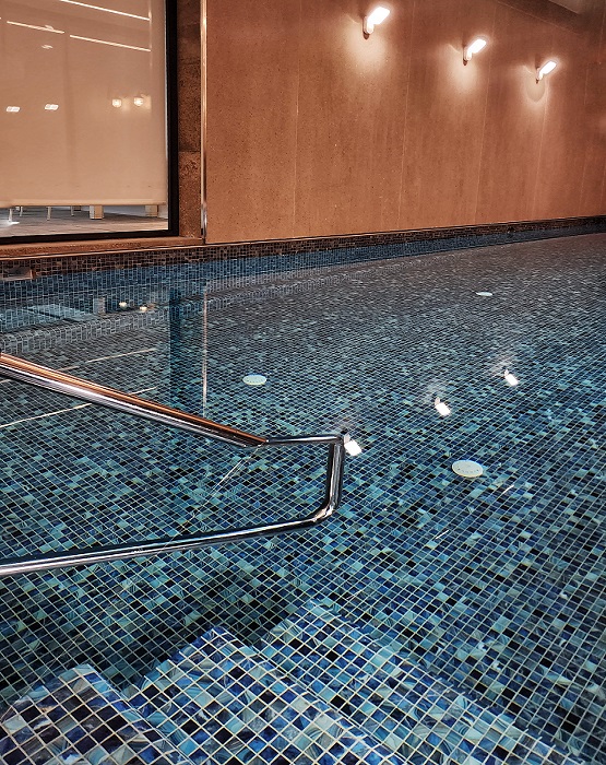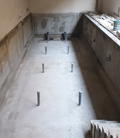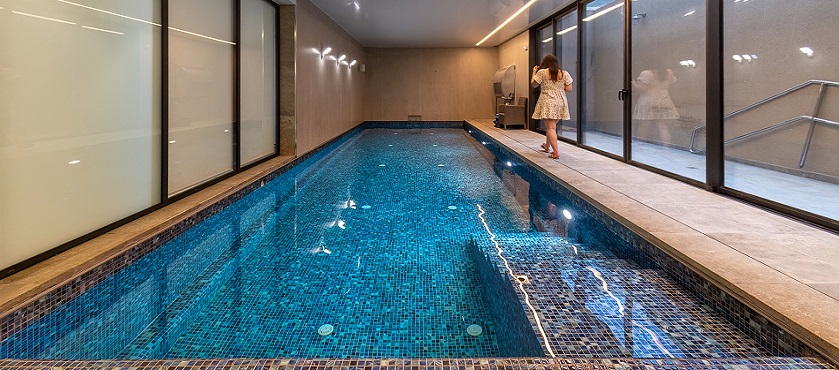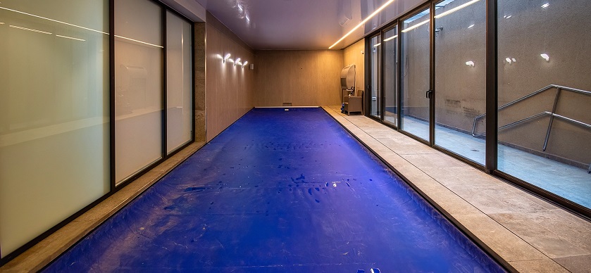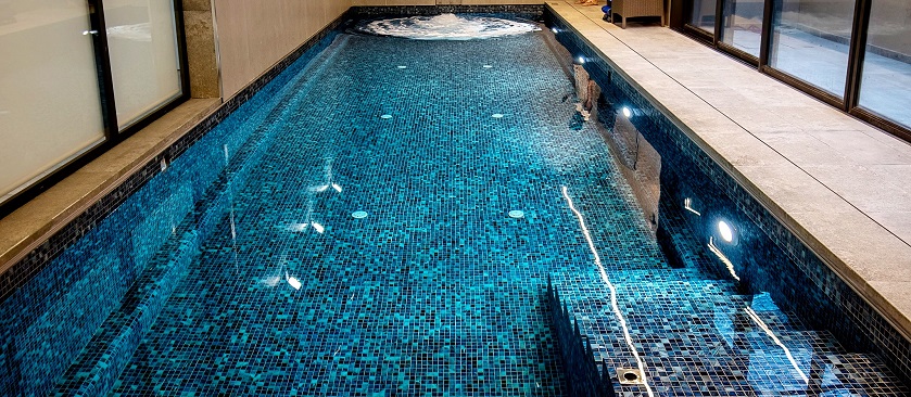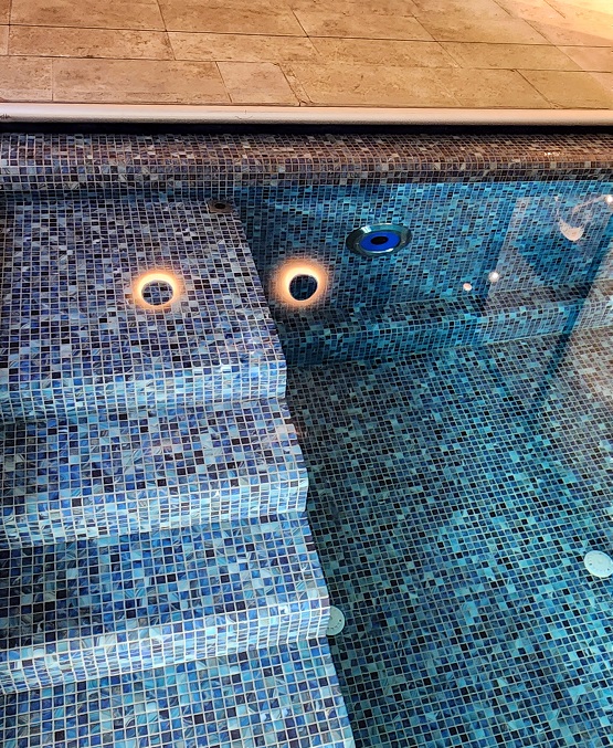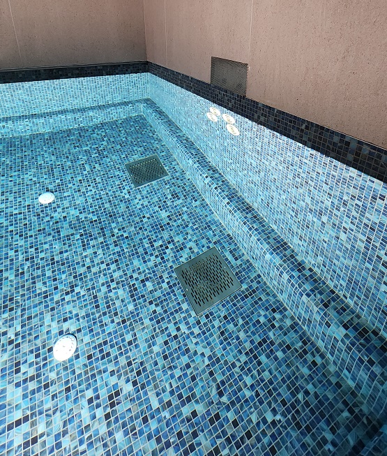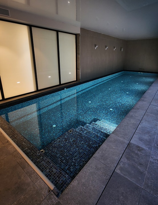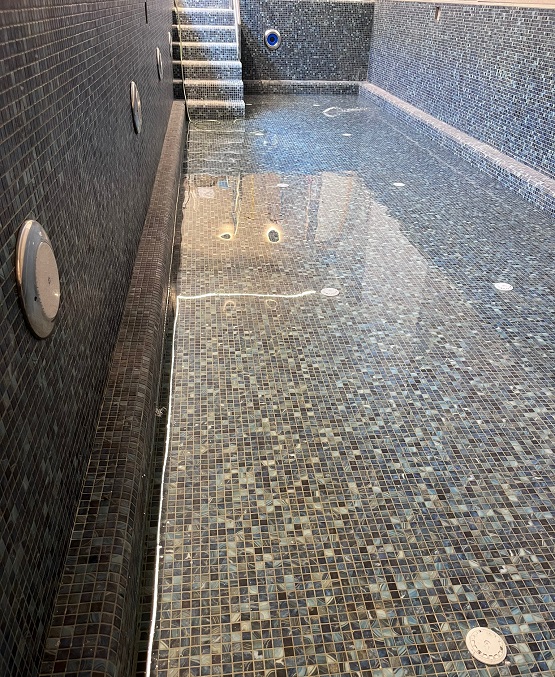 תכנון והקמת בריכת שחיה במרתף בית מגורים פרטי – בריכת בטון בחיפוי פסיפס – מבנה סקימרים