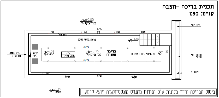 תכנון והקמת בריכת שחייה מבטון במרתף בית פרטי. על הבריכה: בריכת סקימרים בחיפוי פסיפס (דגם רויאל) במידות 11X3 מטרים ובעומק מקסימלי של 1.35 מטרים.