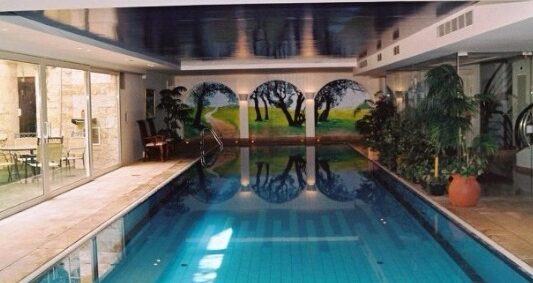 בריכת גלישה יוקרתית – תעלת גלישה סמויה בחיפוי אבן באורך 20 מ' ממוקמת בקומת המרתף של בית פרטי בירושלים. סביבת הבריכה כוללת ציורי קיר בעבודת יד ותקרת בריסול משולבת בסיבים אופטיים ליצירת אפקט נצנוץ כוכבים.