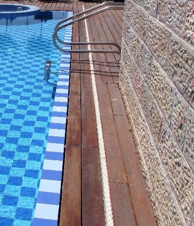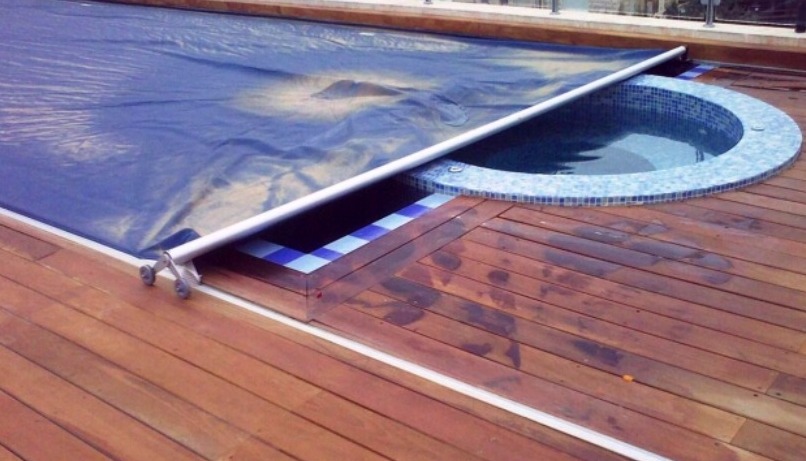 האתגר בבריכה הזו היה שילוב של ג'קוזי ובריכה תחת כיסוי חשמלי אחד, כאשר לבריכה תעלת גלישה על 2 צלעות וקיר מוגבה בשתי הצלעות הנותרות, מבנה הג'קוזי בולט 5 ס"מ בלבד מעל מפלס מי הבריכה ומוזן ממערכת סינון וחימום נפרדת לחלוטין המאפשרת טמפרטורה שונה בין הג'קוזי לבריכה. כל מערכות הבריכה והג'קוזי מוסתרות מתחת לדק ההיקפי.
