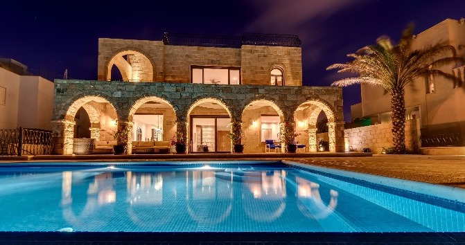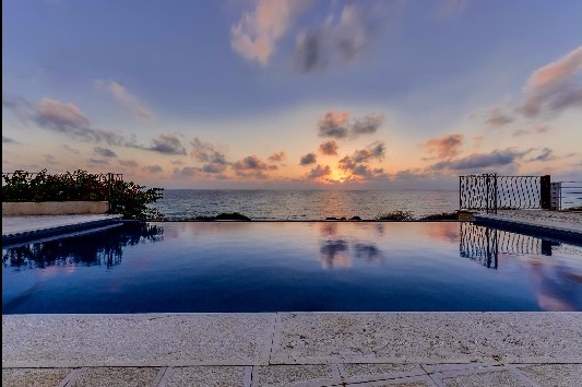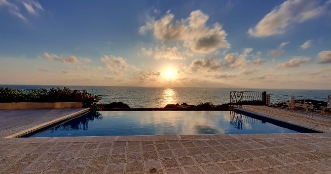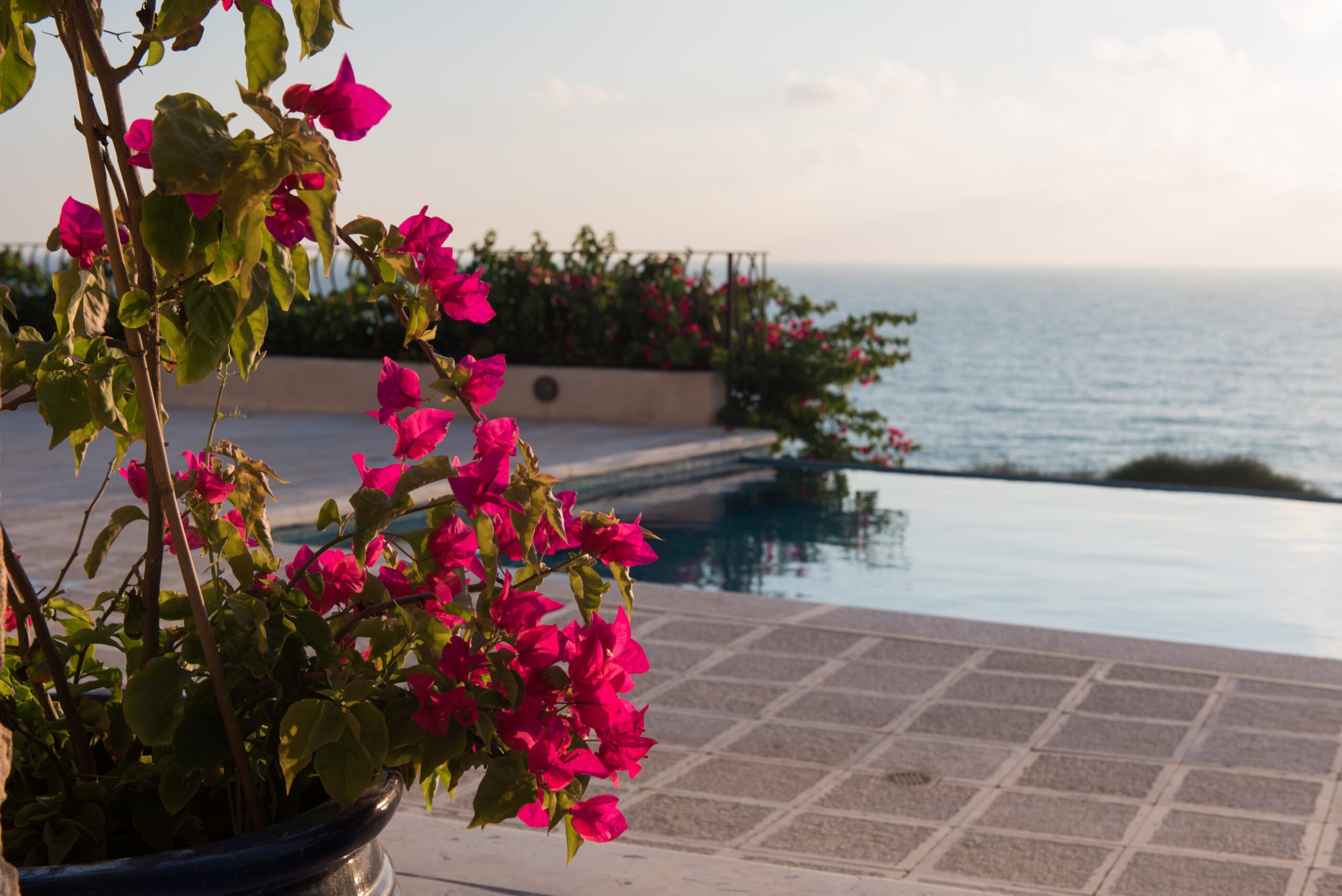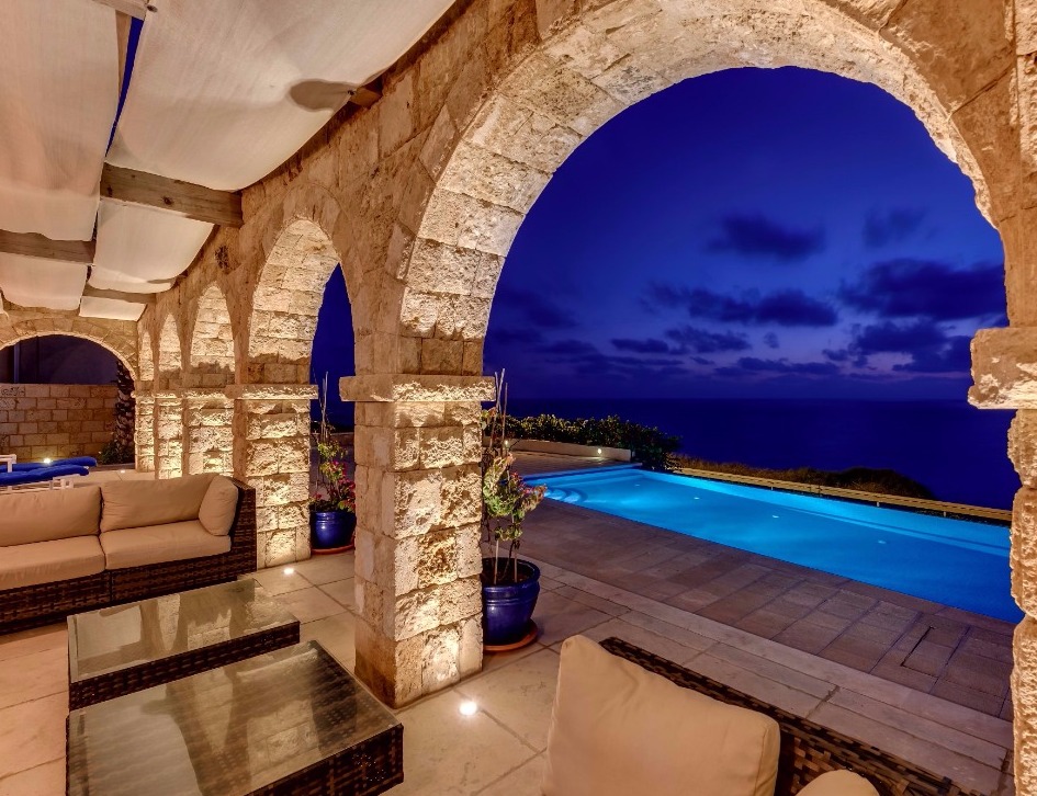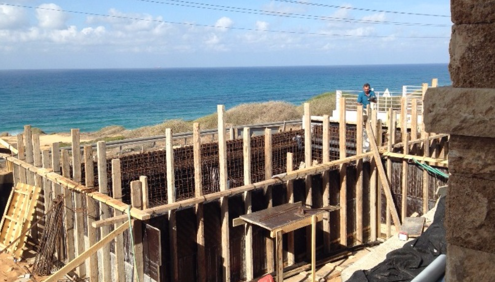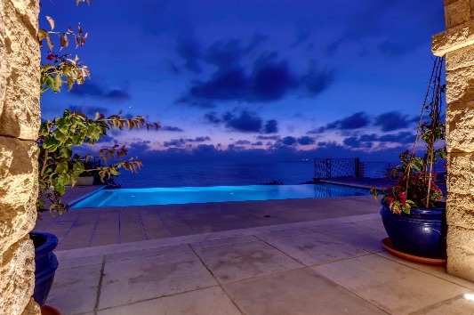 אין מקום מתאים יותר לבריכת יוקרה בעיצוב אינפיניטי מאשר צוק על חוף הים – בדיוק כמו זה צפונית לנתניה. מבנה בטון בחיפוי פסיפס.