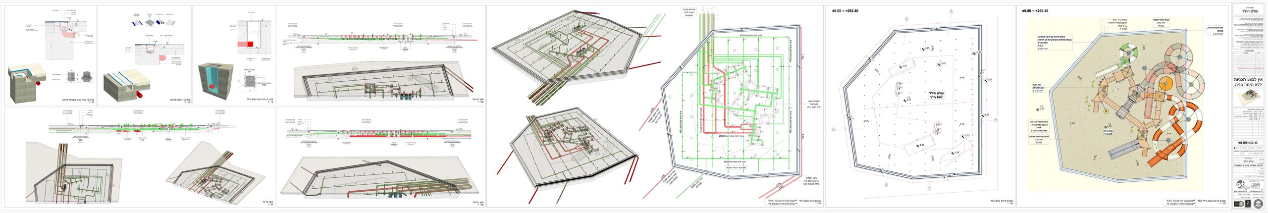Plan for integrating the balance tank structures and pump room within the site development drawings; incorporation of the waterslide layout (to be provided by the slide manufacturer), including routing of interconnecting pipelines between the structures